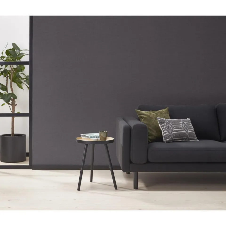 Vliesbehang donkergrijs voorzien van het FSC keurmerk. Goed afwasbaar. 10 meter per rol.