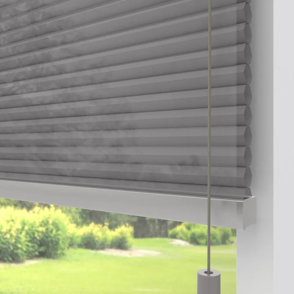 Lichtdoorlatende dubbele plissé grijs met lichte glans en meekleurende achterzijde. Dit mooie dubbele plissé gordijn heeft de hoogste isolatiewaarde. Het heeft een honingraatstructuur die een stilstaande luchtlaag creëert, dit zorgt voor een isolerende werking. Het zorgt ervoor dat de warmte binnen blijft als het buiten koud is en andersom. De aluminium coating aan de binnenzijde, levert de meeste energiebesparing op. Voor een isolerende werking kun je ook denken aan een combinatie tussen plisségordijnen en een overgordijn. De koorden zijn verwerkt in de honingraat en zijn niet zichtbaar. Verkrijgbaar als top down, top down bottom up of top down bottom up gespannen. Een top down bottom up gordijn kan zowel aan de bovenkant als de onderkant worden uitgevouwen voor volledige controle over de gewenste lichtinval en privacy. Een gespannen plissé is zeer geschikt voor draaikiepramen omdat de stof goed op zijn plek blijft. Op maat te maken en volledig naar wens samen te stellen. Bepaal zelf de kleur van het systeem en kies uit een bijpassende koordhanger van kunststof, rvs of zwart metaal.