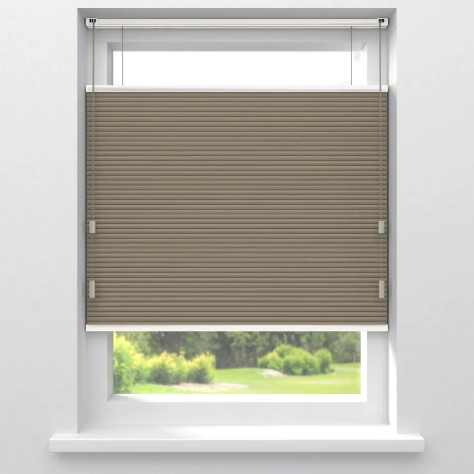 Verduisterende dubbele plissé taupe met fijne structuur en witte achterzijde. Dit mooie dubbele plissé gordijn heeft de hoogste isolatiewaarde. Het heeft een honingraatstructuur die een stilstaande luchtlaag creëert, dit zorgt voor een isolerende werking. Het zorgt ervoor dat de warmte binnen blijft als het buiten koud is en andersom. De aluminium coating aan de binnenzijde, levert de meeste energiebesparing op. Voor een isolerende werking kun je ook denken aan een combinatie tussen plisségordijnen en een overgordijn. De koorden zijn verwerkt in de honingraat en zijn niet zichtbaar. Verkrijgbaar als top down, top down bottom up of top down bottom up gespannen. Een top down bottom up gordijn kan zowel aan de bovenkant als de onderkant worden uitgevouwen voor volledige controle over de gewenste lichtinval en privacy. Een gespannen plissé is zeer geschikt voor draaikiepramen omdat de stof goed op zijn plek blijft. Op maat te maken en volledig naar wens samen te stellen. Bepaal zelf de kleur van het systeem en kies uit een bijpassende koordhanger van kunststof, rvs of zwart metaal.