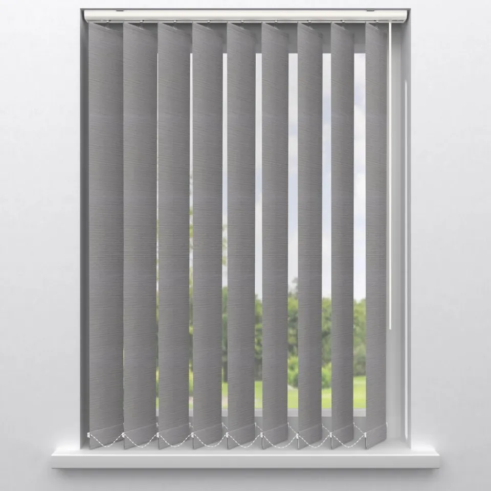 Verticale lamellen van een witte stof. De lamellen zijn 9 cm breed. Voor de rails kun je kiezen uit een witte of een grijze rail en de tuimelstok is wit. Kies zelf of je de lamellen links, rechts of in het midden wilt bedienen en bepaal eenvoudig de mate van lichtinval. De lamellen zijn vochtbestendig, eenvoudig schoon te maken en ook te gebruiken voor keukens en slaapkamers. De lamellen zijn gemaakt van een lichte stof en zijn hierdoor bewegelijk. Om te zorgen dat deze netjes in een rij naar beneden blijven hangen, zijn deze aan de onderkant verbonden met een witte ketting. Op maat te maken en met de juiste afmetingen te bestellen.
