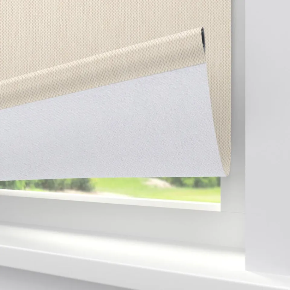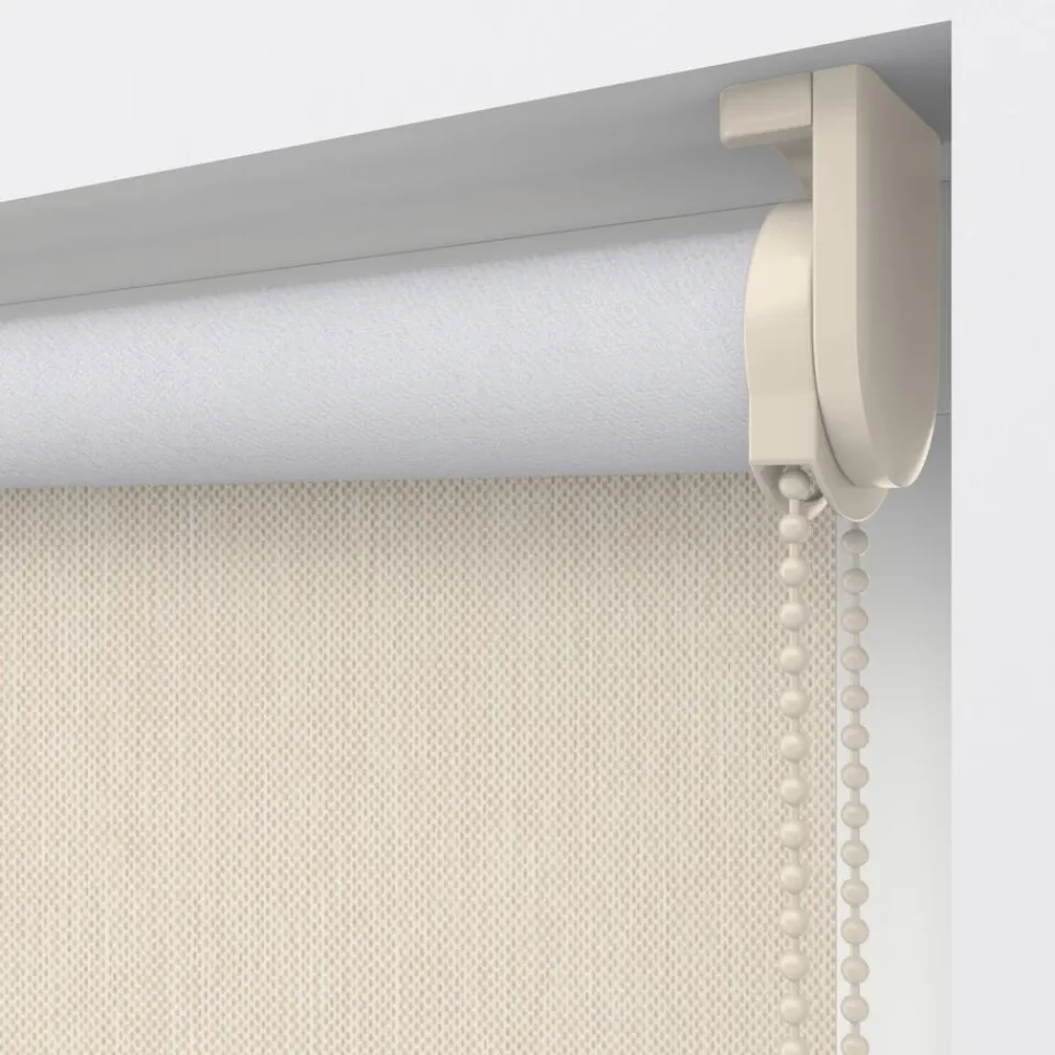 Verduisterend rolgordijn zandkleurig gemêleerd met verticale garens. De witte achterzijde zorgt voor volledige verduistering. Ideaal voor slaapkamers maar ook te gebruiken voor keukens en andere woonruimtes. Op maat te maken en volledig naar wens samen te stellen met een ruime keuze uit accessoires en uitvoeringen. Elektrische bediening en zijgeleiding is mogelijk. Ook geschikt voor draaikiepramen. Eenvoudig met een vochtige doek af te nemen.