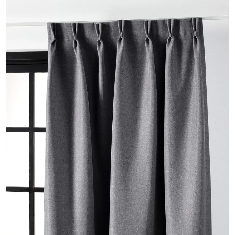 Verduisterende geweven gordijnstof antracietkleurig met linnenlook. Stevig, vormvast, slijtvast en kleurvast. Deze soepelvallende, geweven dim-out gordijnstof is tot 80% verduisterend. De stof laat weinig daglicht door maar houdt niet het volledige zonlicht tegen. 148 cm breed.