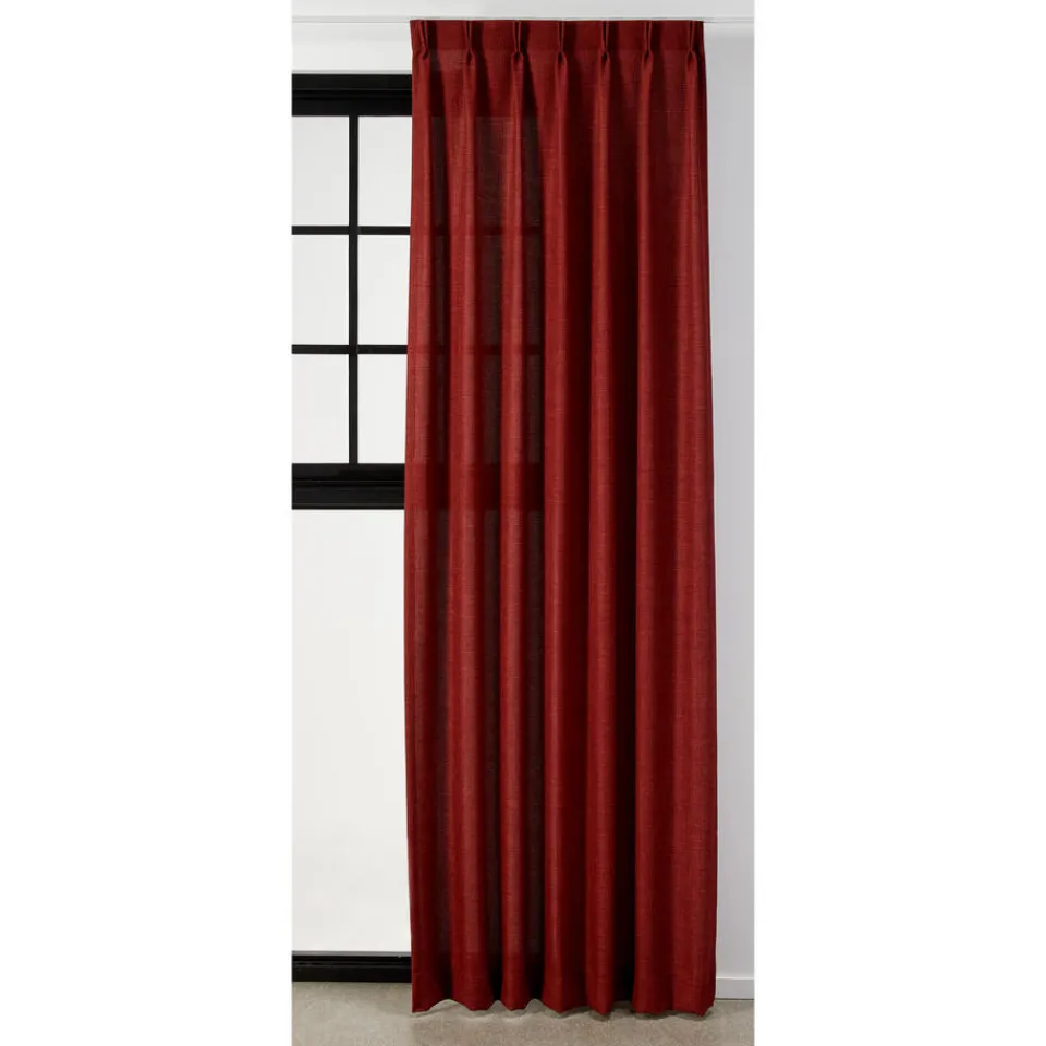 Gordijn Kai rood heeft een grove structuur, is sfeervol en is gemaakt van 100% polyester. Polyester is een synthetische vezel, waardoor deze behoorlijk slijtvast en makkelijk te onderhouden is. Hierdoor voldoet het aan het Oekotex keurmerk.