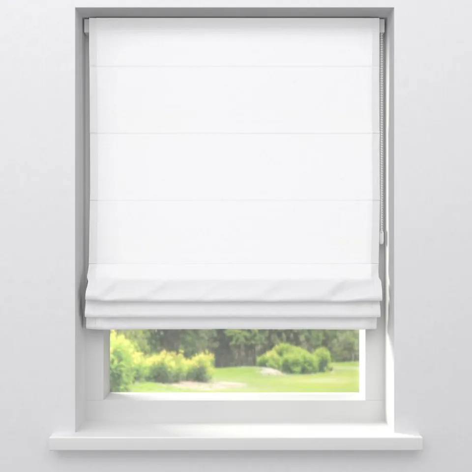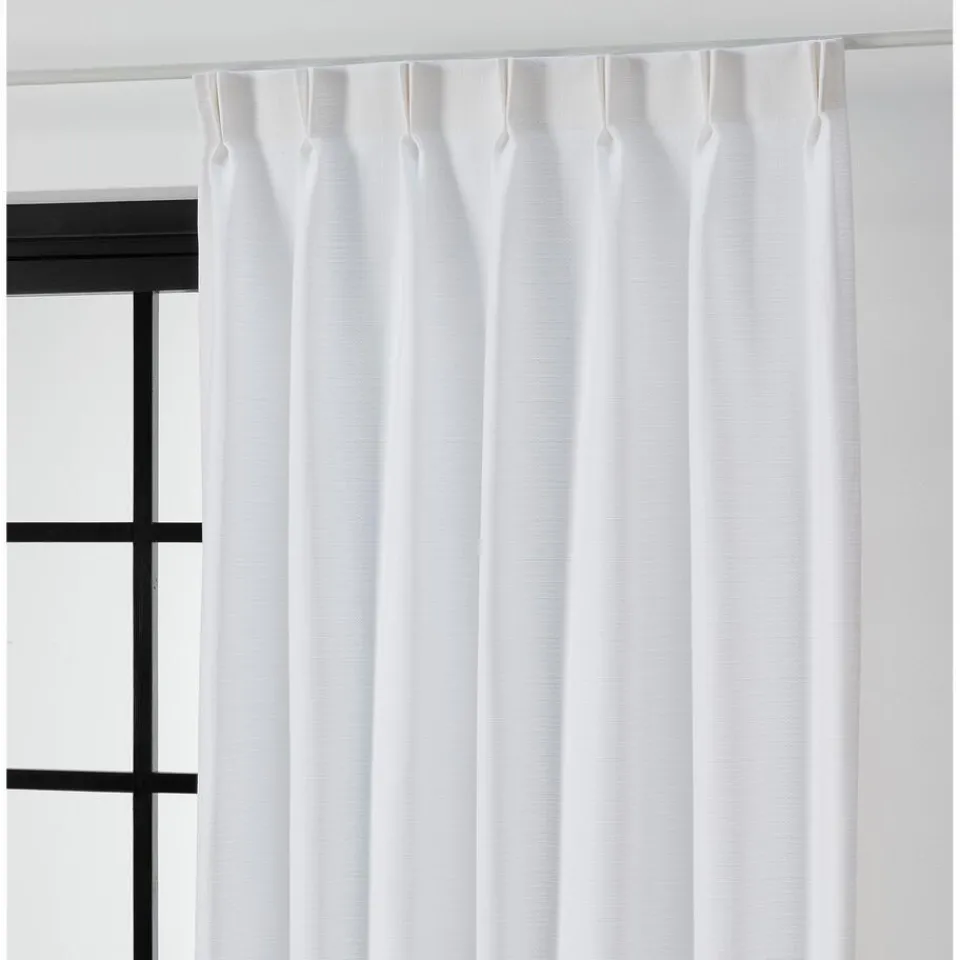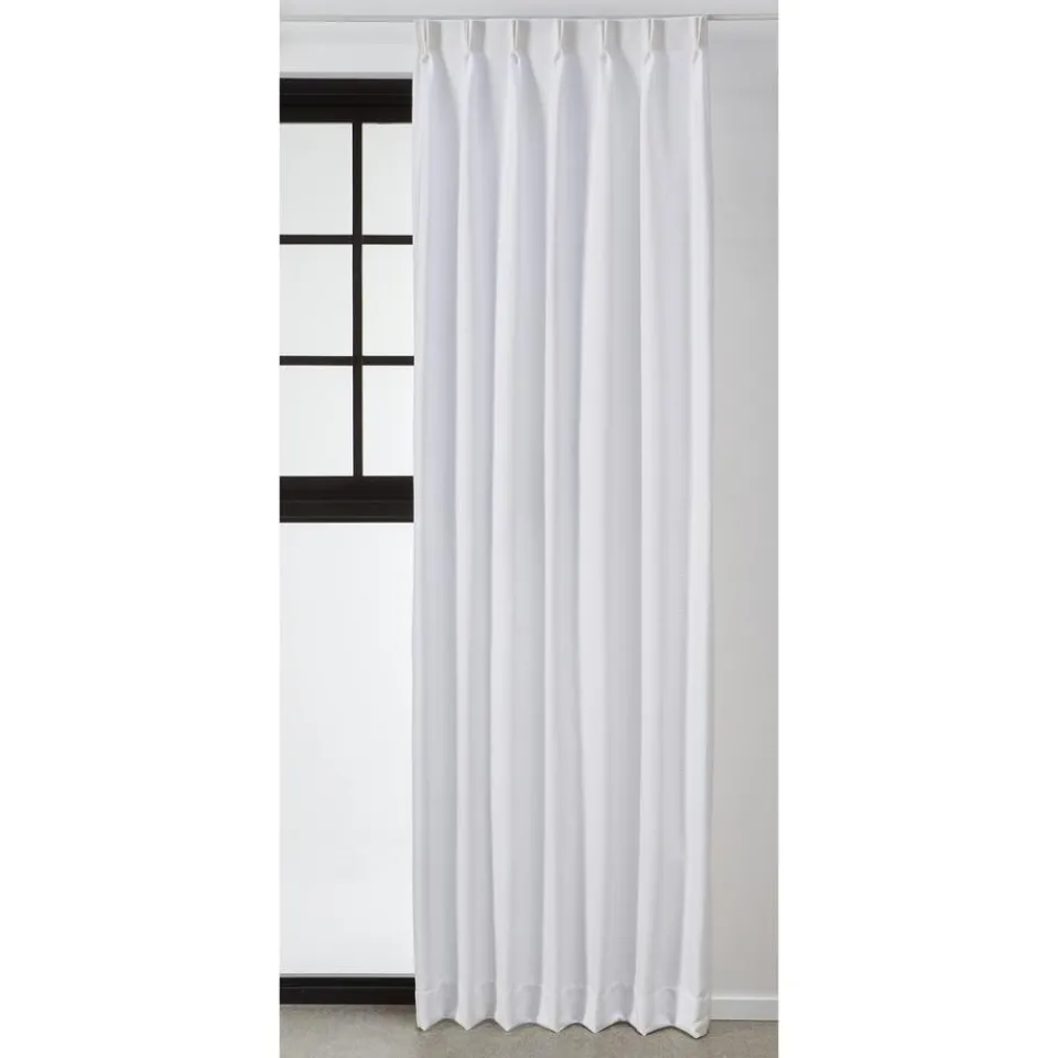 Gordijnstof in witte kleur. 100% polyester. Soepelvallend, stevig en kreukherstellend. 146 cm breed. Zelf te wassen tot 40 graden.