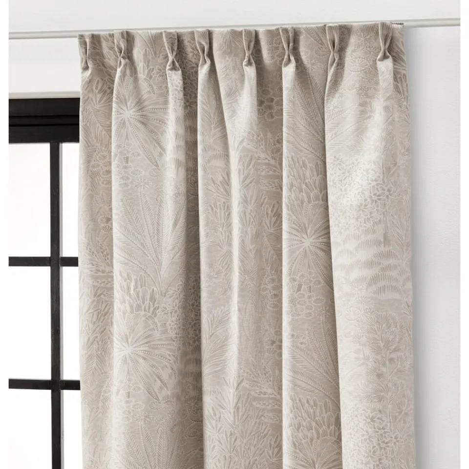 Gordijn Luca is in de kleur off-white en heeft een fijn gewezen bloemenpatroon op de stof. De stof is gemaakt uit een samenstelling van polyester en arcyl, wat het behoorlijk slijtvast maakt en makkelijk in de onderhoud. Met een vochtige doek kan de stof makkelijk worden schoongemaakt.