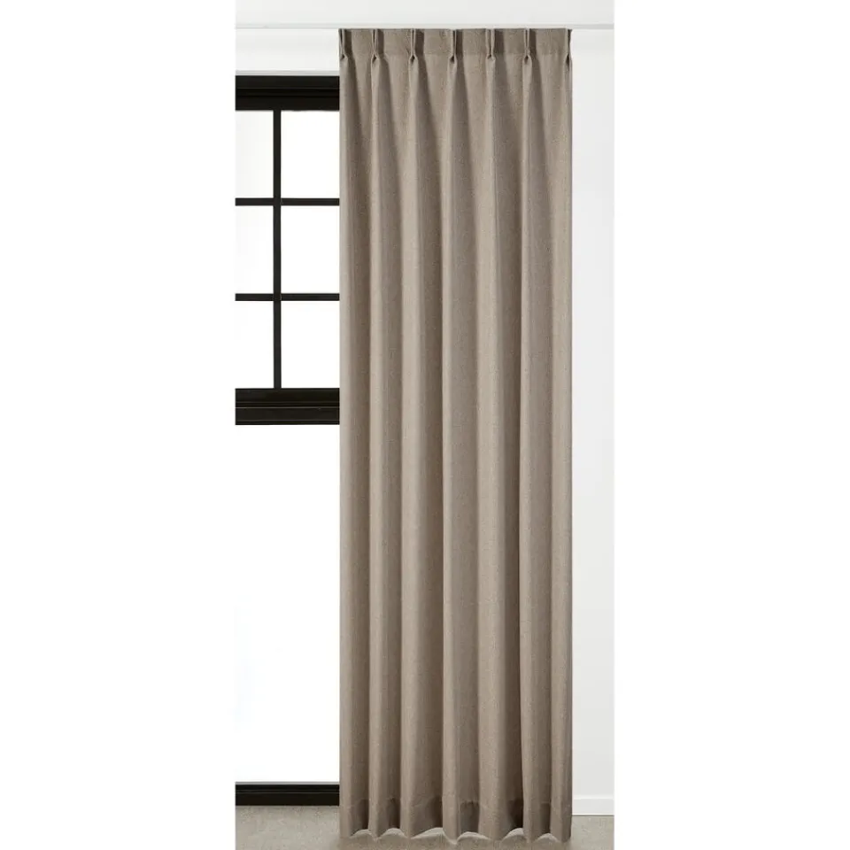 Gordijn Mark in een naturel kleur. Deze stof is gemaakt van 80% polyester en 20% polyester.