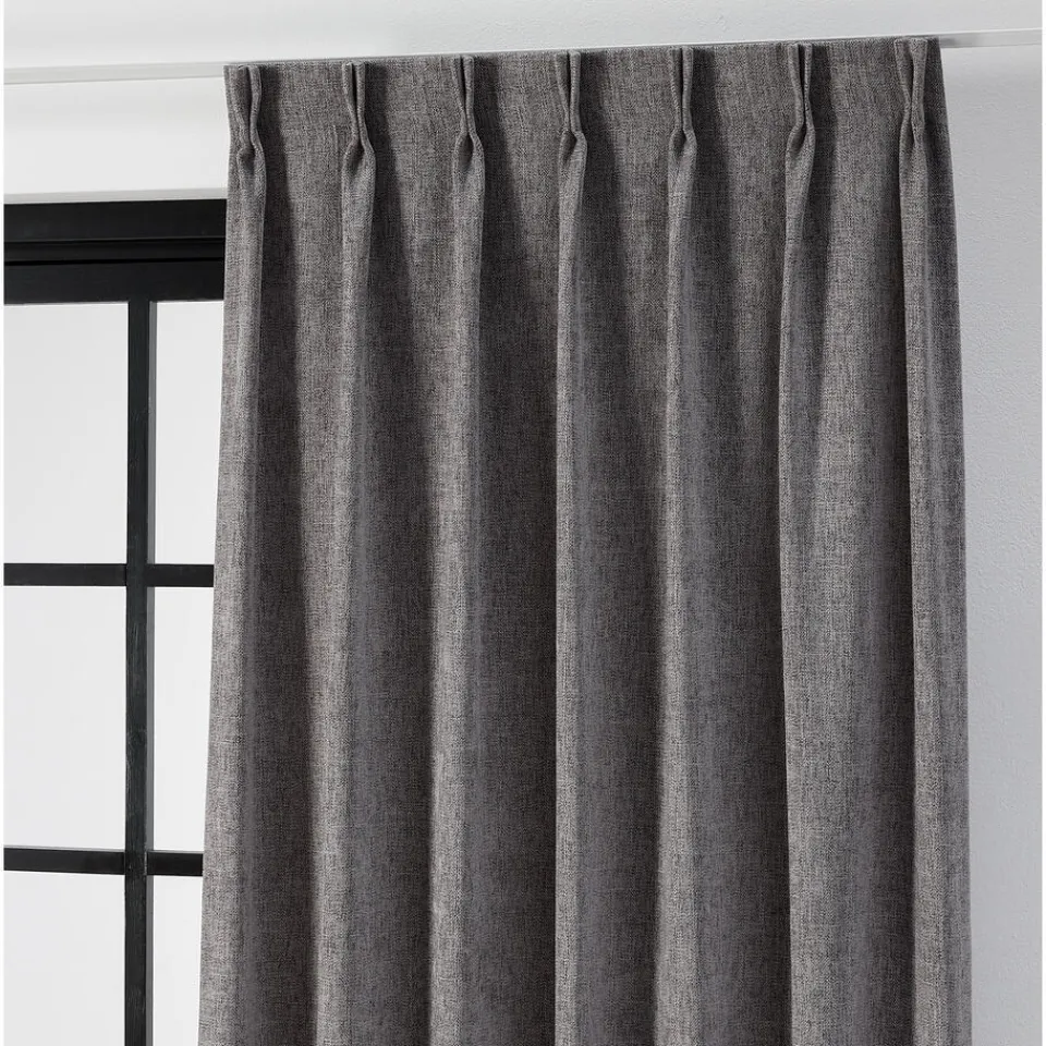 Lichtdoorlatende gordijnstof met donkergrijze kleur. Stevig, soepelvallend en kreukherstellend. Het weef/drukstof zorgt ervoor dat er geen luchtstroom door het materiaal mogelijk is en hierdoor heeft het een perfect isolerende werking. Het houd koude lucht buiten en warme lucht binnen. Deze gordijnstof wordt warmer dan glas, zodat het binnen met gesloten gordijnen lekker behaaglijk aanvoelt. Hierdoor ontstaat er ook minder tocht. Door te kiezen voor een dikke stof (o.a. Sandra, Muck, Romeo, Benji, Jasmijn, Muck, Lou of Cloé), kan de verwarming mogelijk een graadje lager. Laat de verwarming vrij bij het hangen van gordijnen, dit zorgt ervoor dat de opstijgende warmte niet tussen het gordijn en het raam terecht komt. Het is handig als je gordijn op de vensterbank eindigt. Daarnaast kun je ook denken aan een combinatie tussen plisségordijnen en een overgordijn voor een extra isolerende werking.