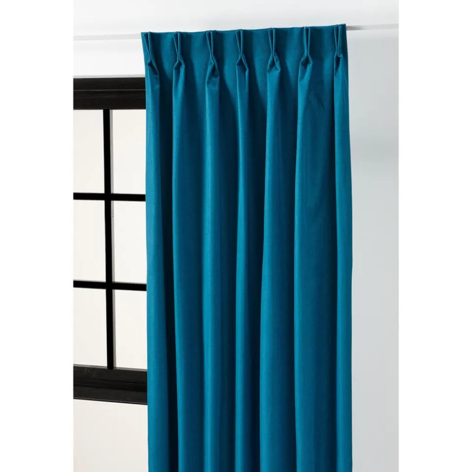 Verduisterend gordijn Phileine Petrol heeft een lichte glans. Een prachtig overgordijn voor in de woon- of slaapkamer, maar je kan ze ook combineren met inbetween gordijnen of andere raamdecoratie. En ze passen bij ieder interieur. De gordijnstof is gemaakt van 100% polyester en is stevig en kreukherstellend. Dit black-out gordijn is aan de achterkant voorzien van een witte coating. Deze coating zorgt dat dit gordijn geen licht doorlaat en 100% verduisterend is. Daarom is de achterkant meestal wit en de voorkant is de gewone gordijnstof. Een black-out gordijn voelt wat stugger aan. Deze gordijnstof houdt, in tegenstelling tot dim-outs 100% het zonlicht tegen. Bij de confectie van deze kwaliteit kunnen kleine gaatjes ontstaan. Dit is inherent aan de stof en kan niet voorkomen worden. 145 cm breed. In diverse kleuren verkrijgbaar.