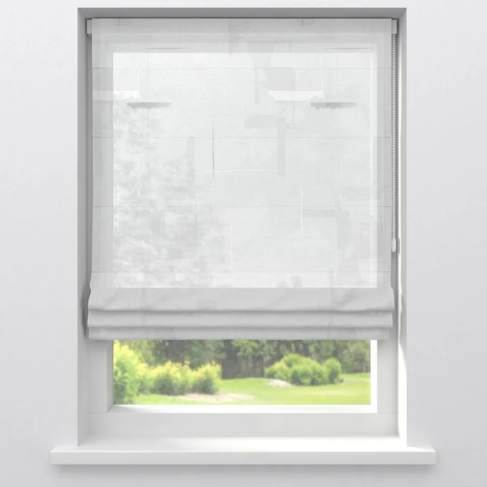 Inbetween van soepele witte stof met subtiel dessin. Vormvast. 298 cm hoog.