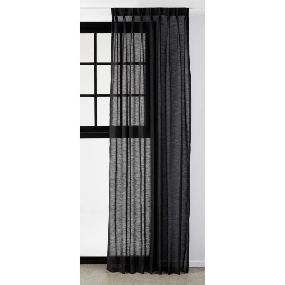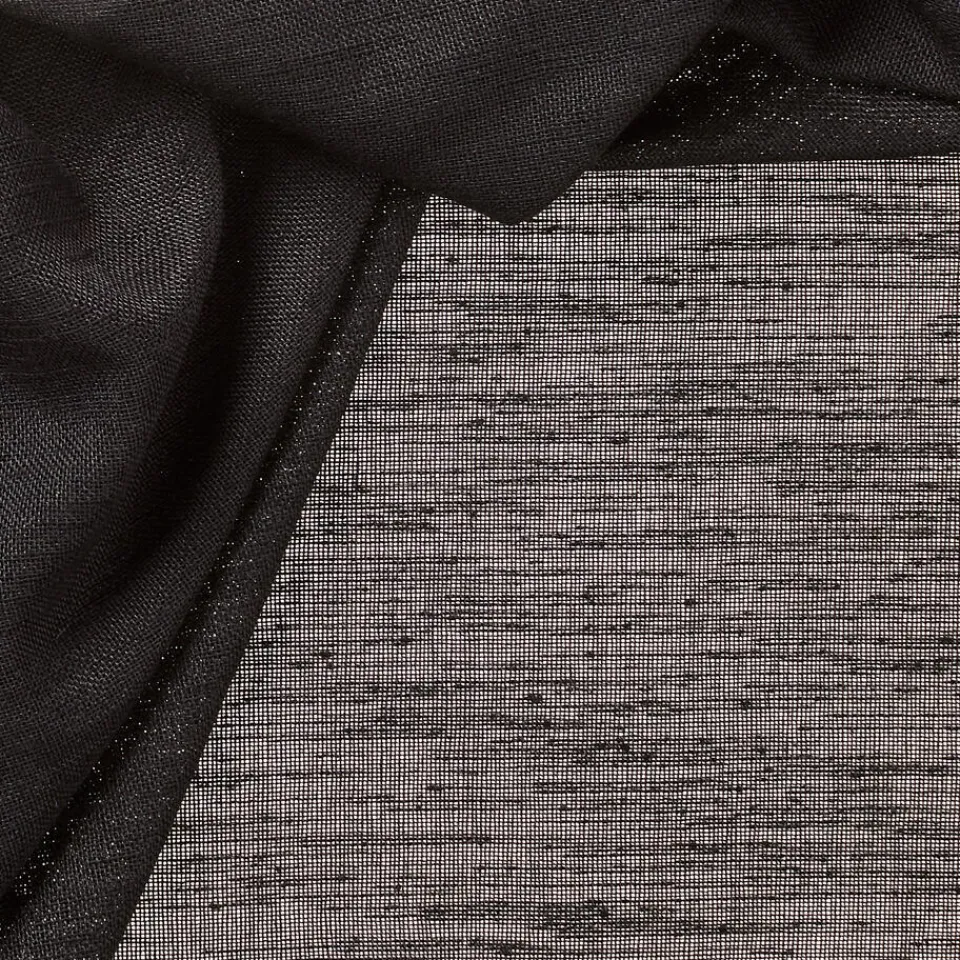 Transpante gordijnstof zwart. De structuur stof heeft een stoere en natuurlijke uitstraling. De soepelvallende stof is wat dikker en is hierdoor zeer geschikt als inbetween. 300 cm.