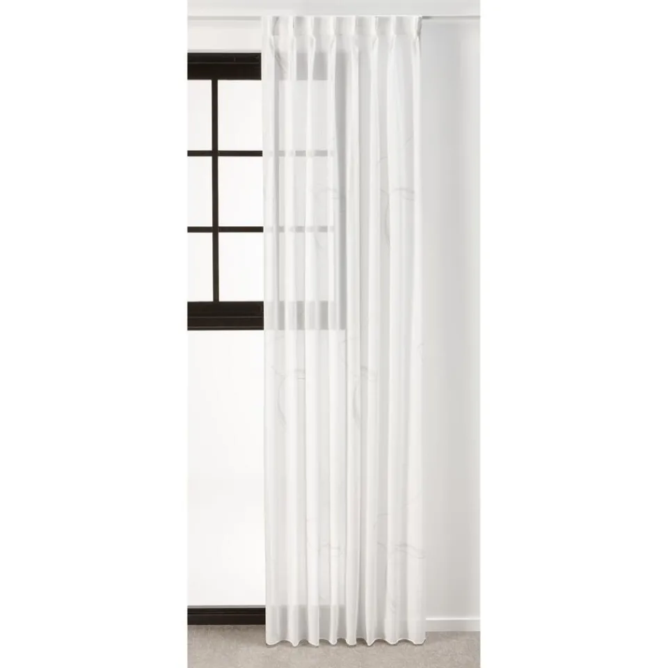 Inbetween gemaakt van soepel wit materiaal met een subtiel dessin. Vormvast. 198 cm hoog.