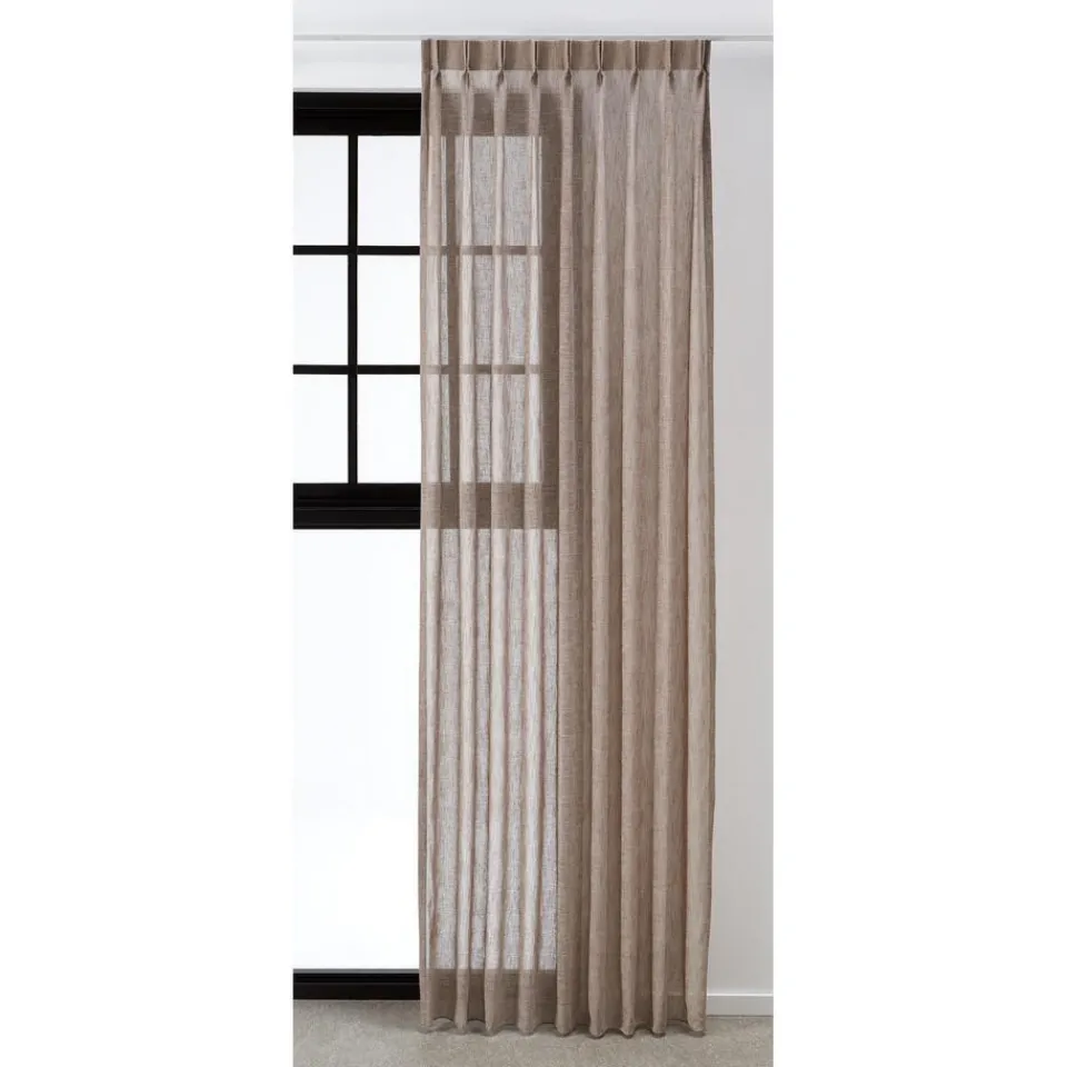 Inbetween Pippa Bruin is een transparante gordijnstof met een kleurmelange, gemaakt van 92% polyester en 8% linnen. Door de mix van materialen heeft Pippa een natuurlijke uitstraling en linnenlook. Behoefte aan meer licht maar heb je wel de behoefte aan de nodige privacy? Kies dan voor een inbetween in de woonkamer en combineer deze met een mooi verduisterend overgordijn. 300 cm hoog.