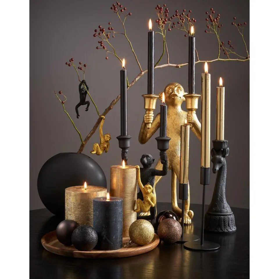 Rustieke kaars goud. 17 cm hoog.