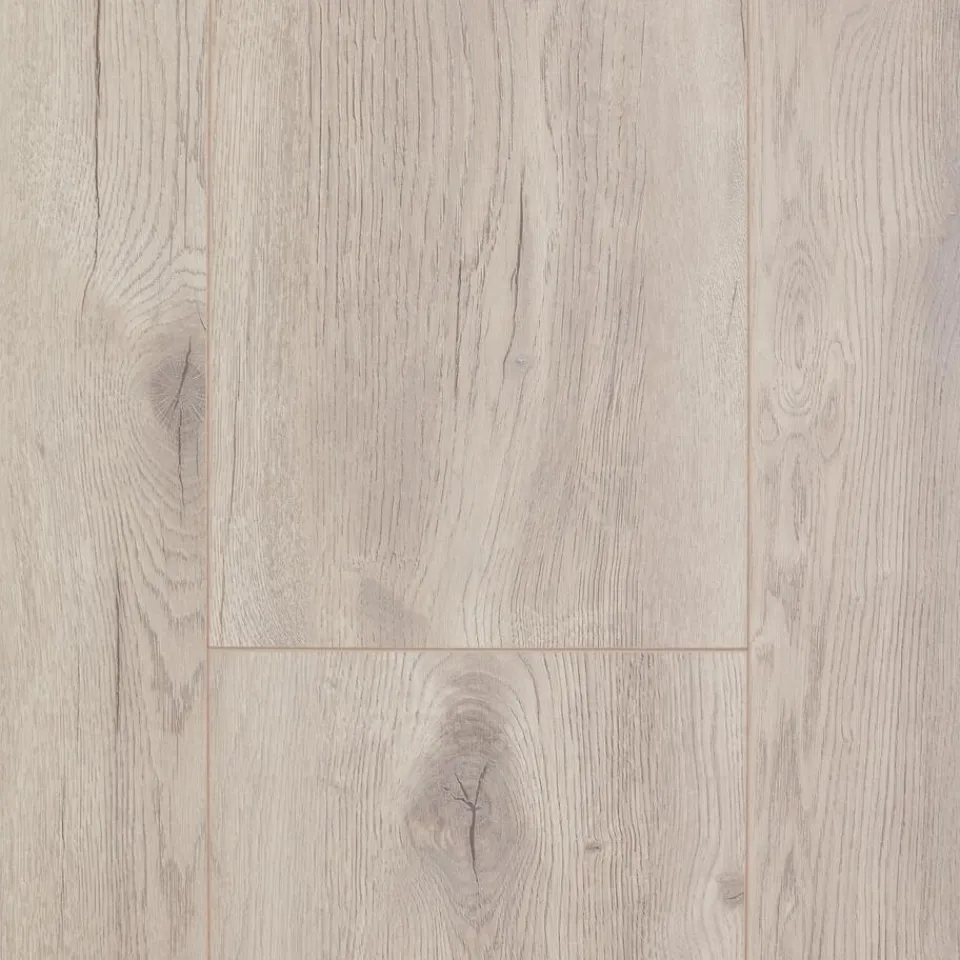 Laminaat wit eiken met 4-zijdige V-groef. Geschikt voor intensief woongebruik. Voorzien van het FSC-keurmerk. 8 mm dik.