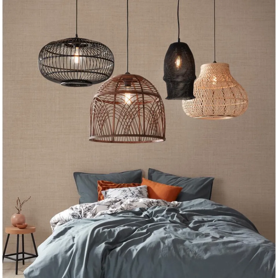 Lampenkap van bamboe in de kleur zwart. Afmeting 47,5×29 cm (dxh).