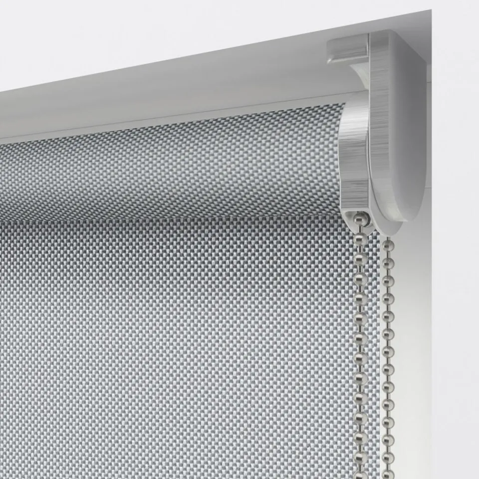 Screen rolgordijn Seb is grijs van kleur en lichtdoorlatend. Het materiaal bestaat uit glasvezeldraden met een PVC-coating. Hierdoor is de stof niet alleen sterk, maar filtert ook het zonlicht en blokkeert het inkijk. Dit systeem is alleen geschikt voor binnen gebruik en valt niet te monteren voor buiten het raam.