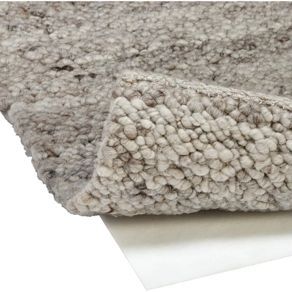 Handgemaakt bouclé vloerkleed van lichtgrijs gemêleerd wol. Veerkrachtig, geluiddempend en makkelijk in onderhoud. 160×230 cm (bxl).