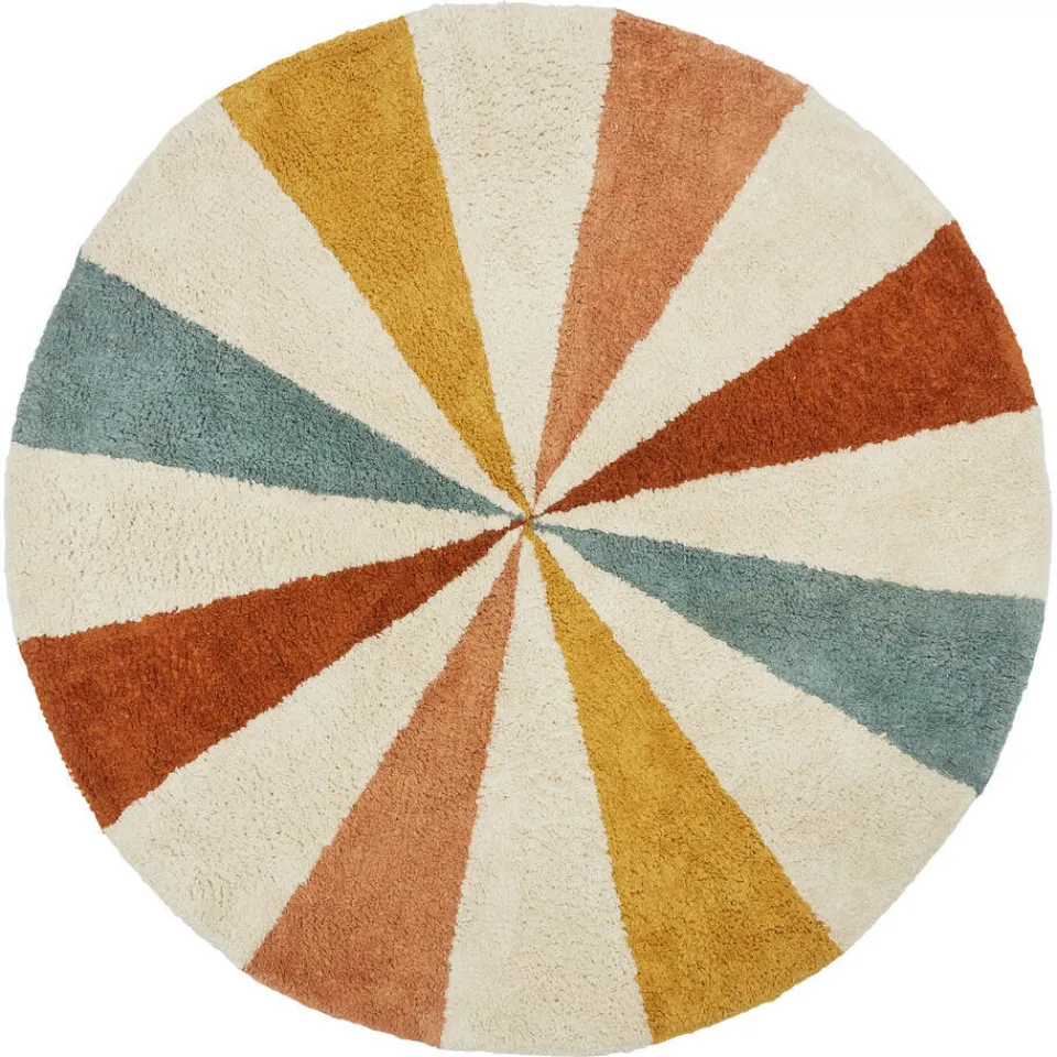Sfeervol vloerkleed Circus in multicolor. Dit vloerkleed is handgemaakt en bestaat uit 100% getuft katoen. ø100 cm.