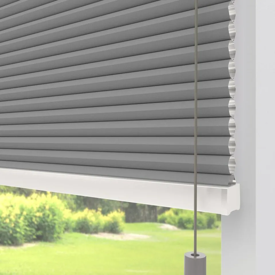 Verduisterende dubbele plissé grijs met witte achterzijde. De dubbel geplooide stof met een honingraatstructuur zorgt voor extra isolatie. De koorden zijn verwerkt in de honingraat en zijn niet zichtbaar. Verkrijgbaar als top down, top down bottom up of top down bottom up gespannen. Een top down bottom up gordijn kan zowel aan de bovenkant als de onderkant worden uitgevouwen voor volledige controle over de gewenste lichtinval en privacy. Een gespannen plissé is zeer geschikt voor draaikiepramen omdat de stof goed op zijn plek blijft. Op maat te maken en volledig naar wens samen te stellen. Bepaal zelf de kleur van het systeem en kies uit een bijpassende koordhanger van kunststof, rvs of zwart metaal.