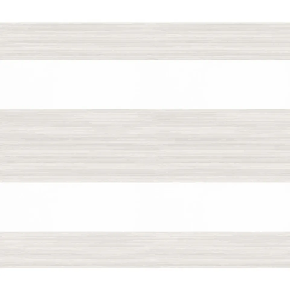 Lichtdoorlatend duo-rolgordijn off-white met streep dessin. De transparante banen hebben een grovere gaasstructuur. De afwisselende open en dichte stofbanen bewegen voor elkaar langs. Zo bepaal je eenvoudig de lichtinval en privacy. Je kunt zelf de kleur kiezen van de cassettes, eindkappen, kettingen, onderlatten en roedes. De bedieningszijde kies je ook zelf: rechts of links. Op maat te maken en eenvoudig met de juiste afmetingen te bestellen.