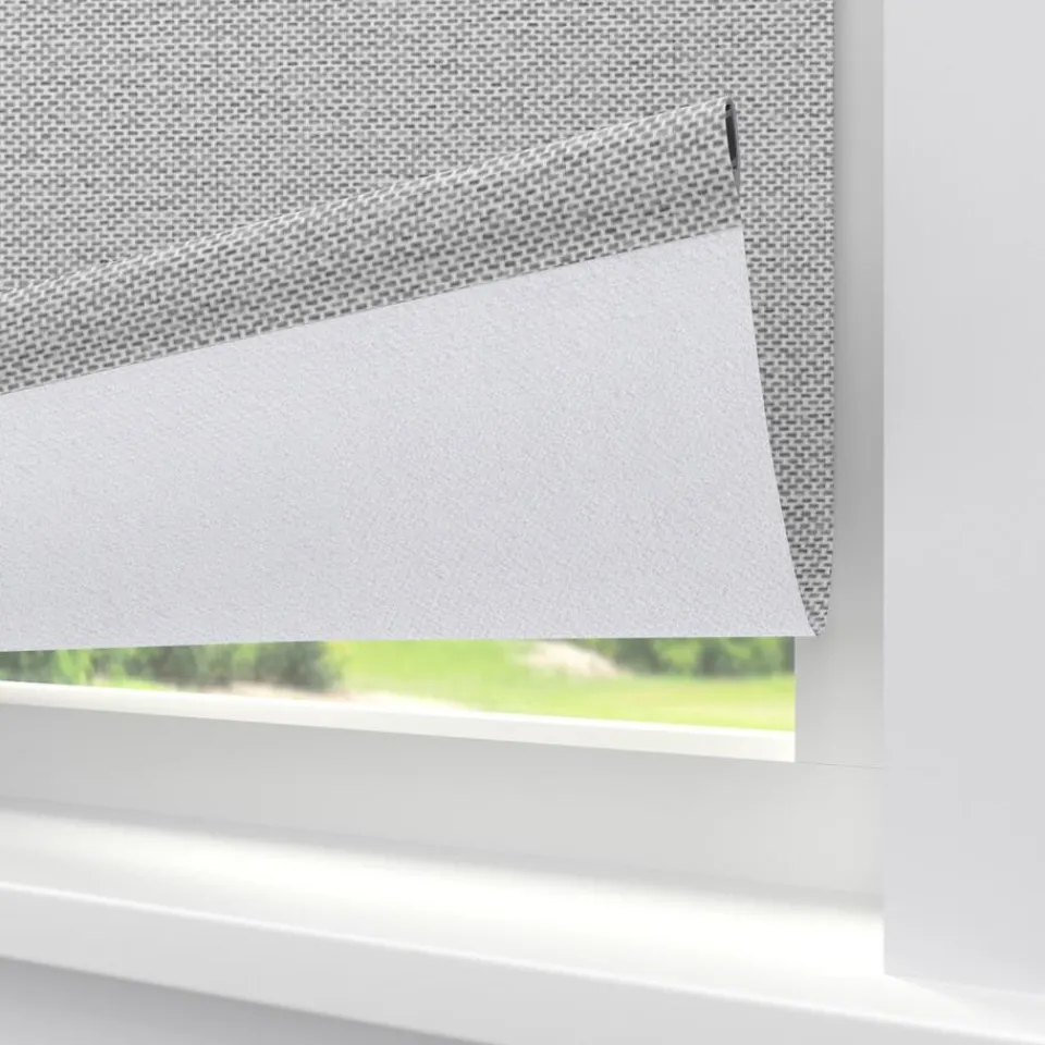Verduisterend rolgordijn lichtgrijs/wit gemêleerd. De witte achterzijde zorgt voor volledige verduistering. Ideaal voor slaapkamers maar ook te gebruiken voor keukens en andere woonruimtes. Op maat te maken en volledig naar wens samen te stellen met een ruime keuze uit accessoires en uitvoeringen. Elektrische bediening en zijgeleiding is mogelijk. Ook geschikt voor draaikiepramen. Eenvoudig met een vochtige doek af te nemen.