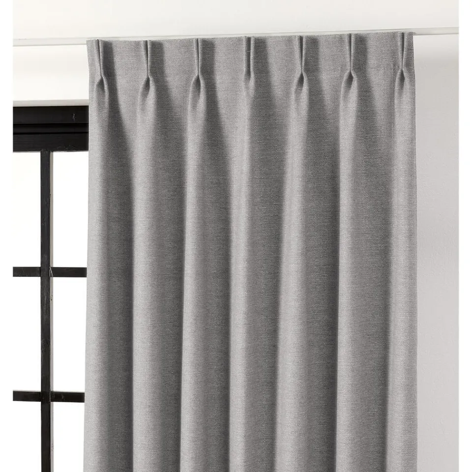 Gordijnstof in lichtgrijze kleur met structuur. Soepelvallend, stevig en kreukherstellend. 145 cm breed. Zelf te wassen tot 40 graden.