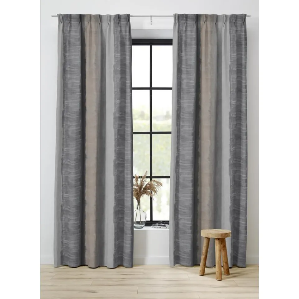 Verduisterende gordijnstof van gemeleerd soepelvallend materiaal. Stevig en kreukherstellend. 156 cm breed.