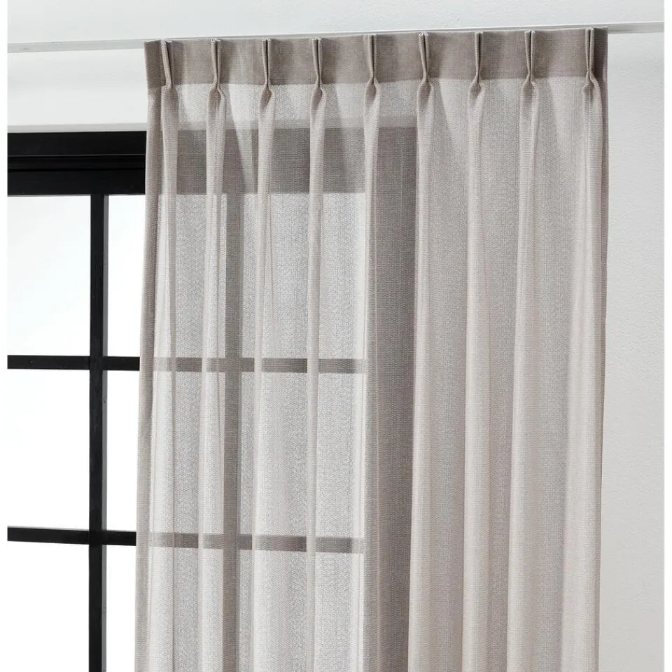 Transparante gordijnstof naturelkleurig. De lichtglanze stof heeft een subtiel opengewerkte structuur en een luxe uitstraling. Stevig, vormvast en soepel. Goed te combineren met een waveplooi maakwijze. 300 cm.