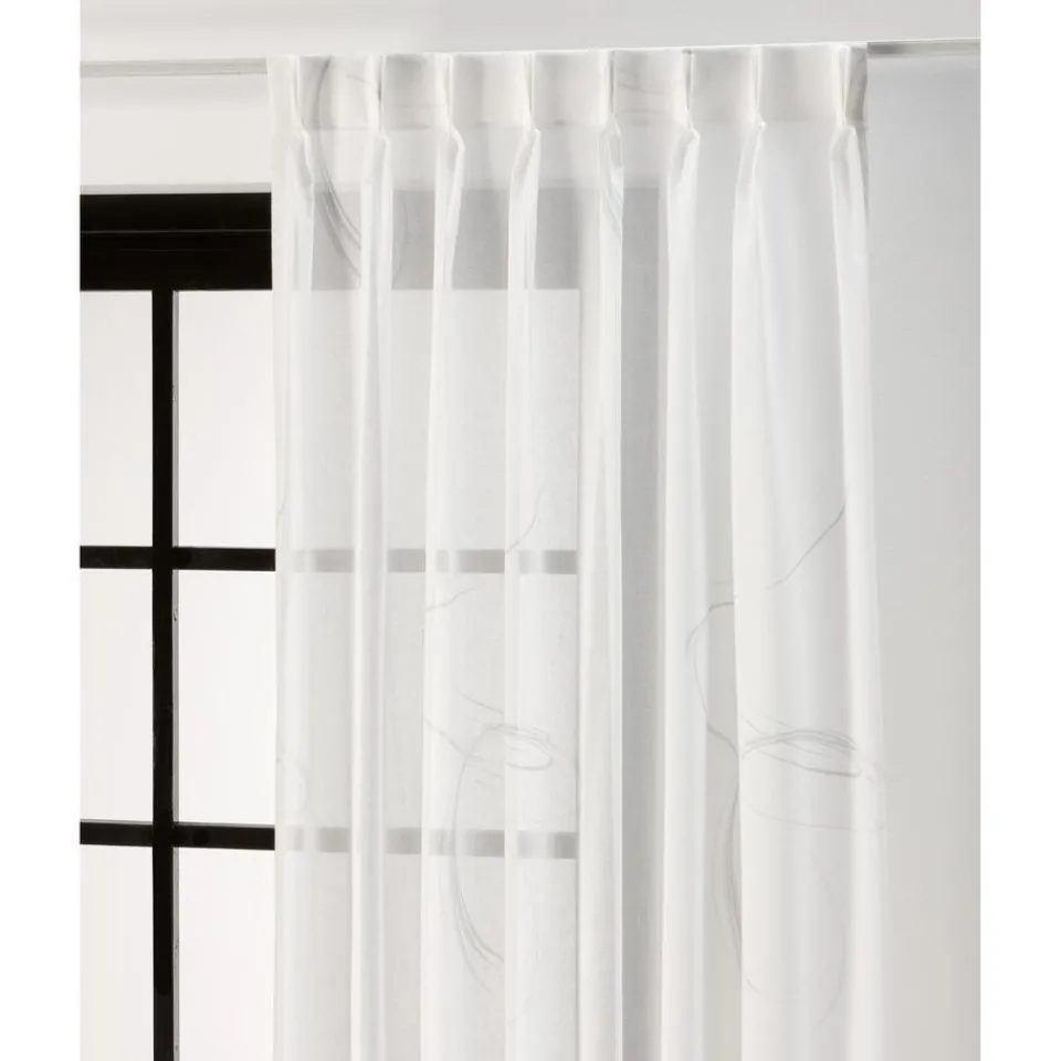Inbetween gemaakt van soepel wit materiaal met een subtiel dessin. Vormvast. 198 cm hoog.