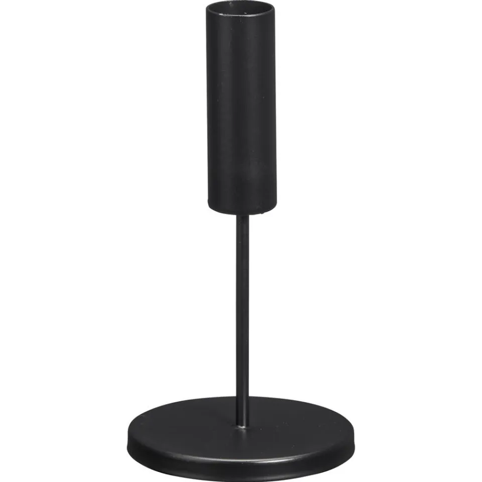 Kandelaar Reims in zwarte kleur. De metalen kandelaar heeft een hoogte van 17 cm.