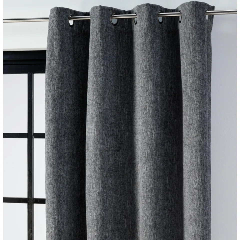 Verduisterend kant en klaar gordijn Arjan Antraciet heeft een natuurlijke weving met een prachtig mêlee-effect en is gemaakt van 100% polyester. De voorkant heeft een geweven structuur en de achterkant een voering die ervoor zorgt dat de gordijnstof 100% verduisterend is. Ideaal voor de slaapkamer, een plek waar het ’s nachts donker moet zijn. Arjan is een thermo gordijn dat helpt om de kamer warm te houden en voorkomt dat de kou binnendringt. Tevens heeft het gordijn een geluiddempende werking voor een aangename akoestiek. Het gordijn is kant en klaar en voorzien van ringen.