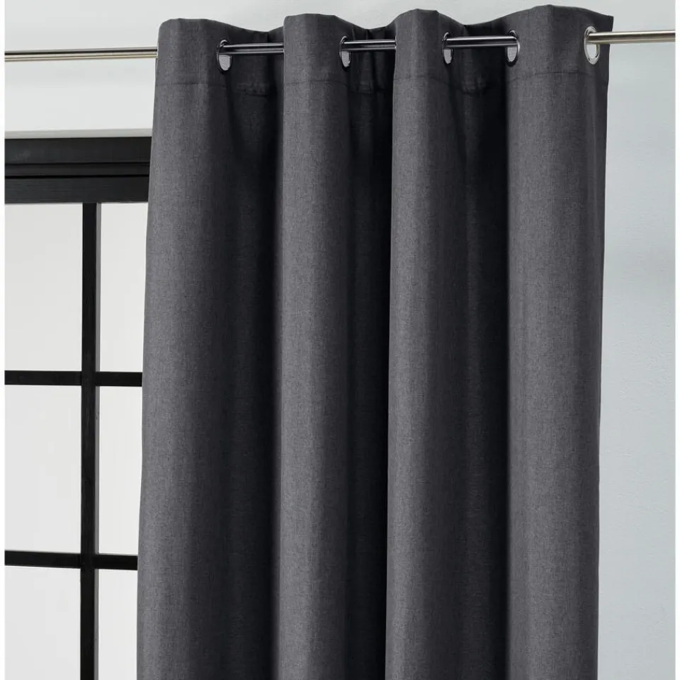 Verduisterend kant en klaar gordijn Frank in de kleur antraciet heeft een mat glanzend effect. De stof is gemaakt van 100% polyester en heeft een gladde structuur. De achterkant is wit van kleur. Het gordijn is 100% verduisterend. Ideaal voor de slaapkamer, een plek waar het ’s nachts donker moet zijn. Tevens heeft het gordijn een geluiddempende werking voor een aangename akoestiek. Het gordijn is voorzien van ringen om het aan een roede op te kunnen hangen. Dit artikel wordt per stuk geleverd en is verkrijgbaar in verschillende kleuren.