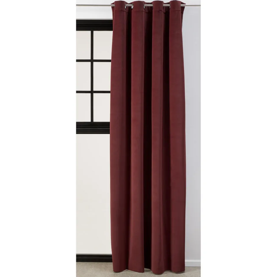 Kant en klaar gordijn Valerie is in de kleur rood bruin en is gemaakt van 100% polyester. De stof eigenschappen zorgen ervoor dat de stof behoorlijk slijtvast is en makkelijk te onderhouden is.