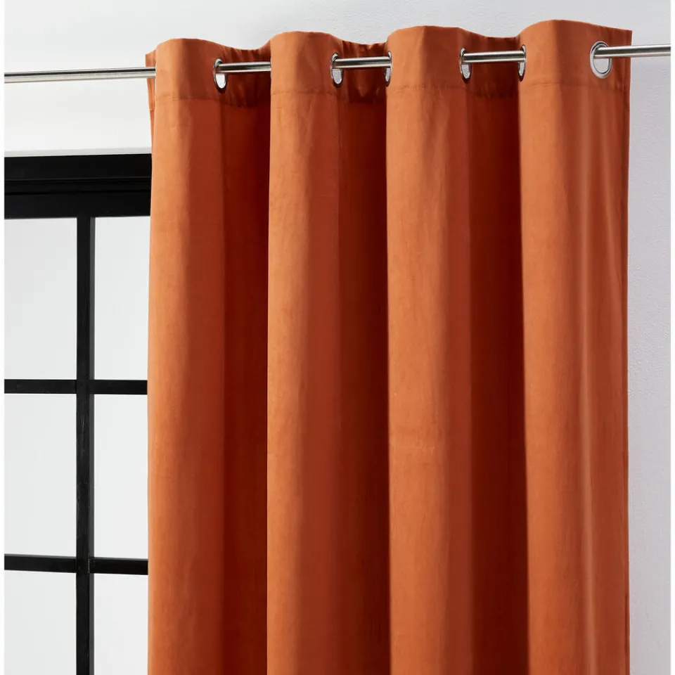 Lichtdoorlatend kant en klaar gordijn terrakleurig. Inclusief ringen. 140×260 cm (bxl).