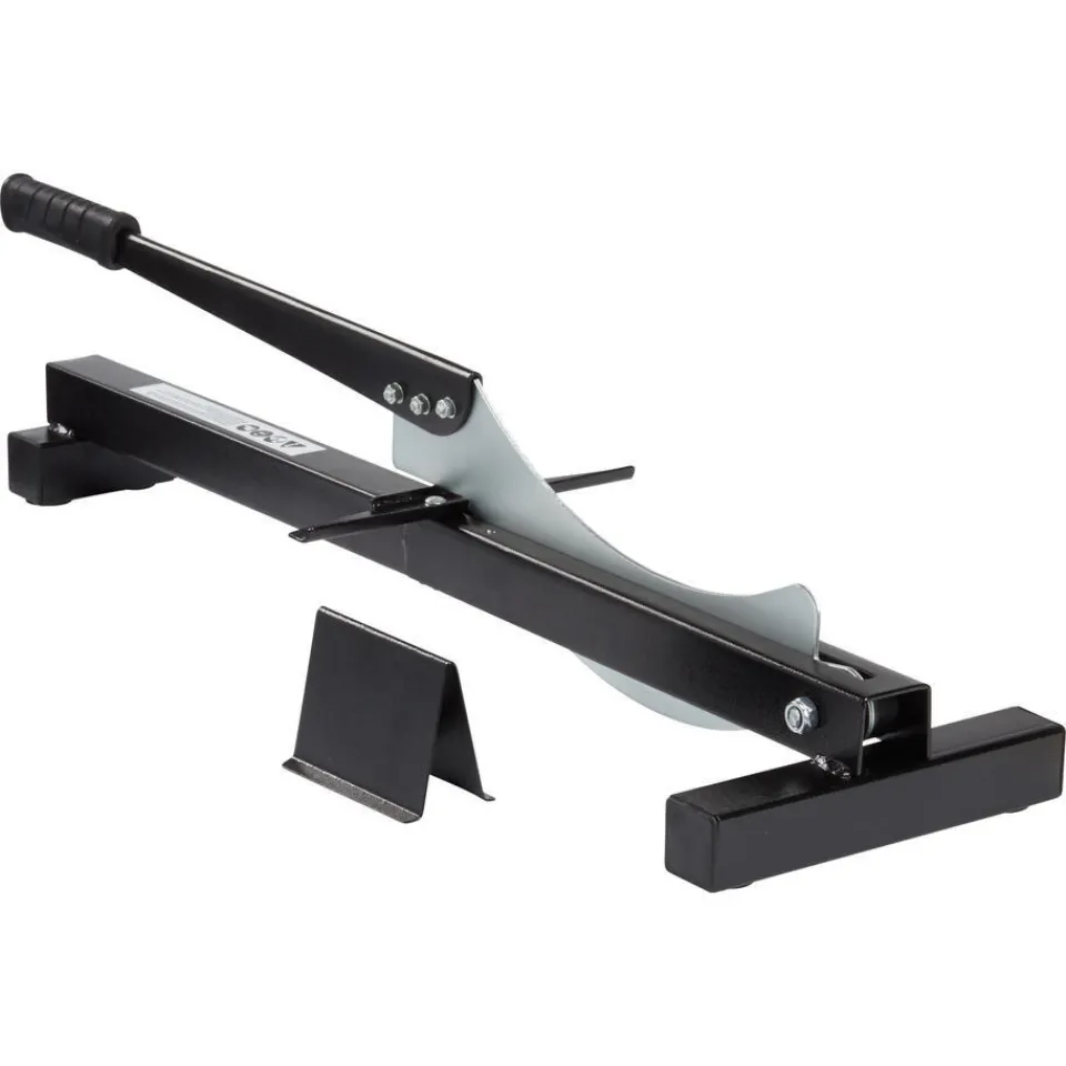 Eenvoudig laminaatplanken op maat snijden zonder batterijen, elektriciteit of werkbank. Licht in gebruik. Geschikt voor extra brede planken. 21 cm max. plankbreedte. 10 mm max. plankdikte.