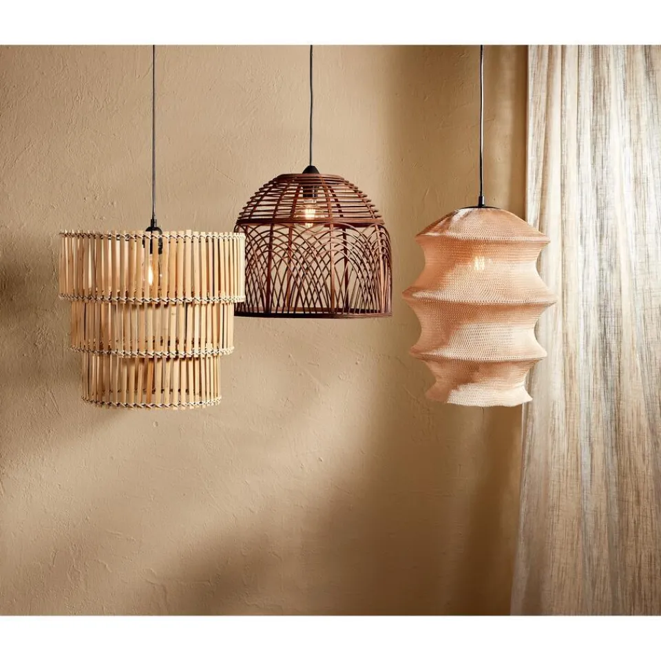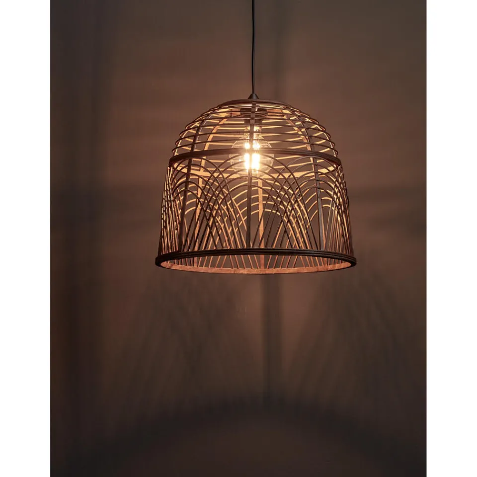 Lampenkap van bruin bamboe. Te combineren met snoerpendel art.nr 0266026. 42×35 cm (dxh).