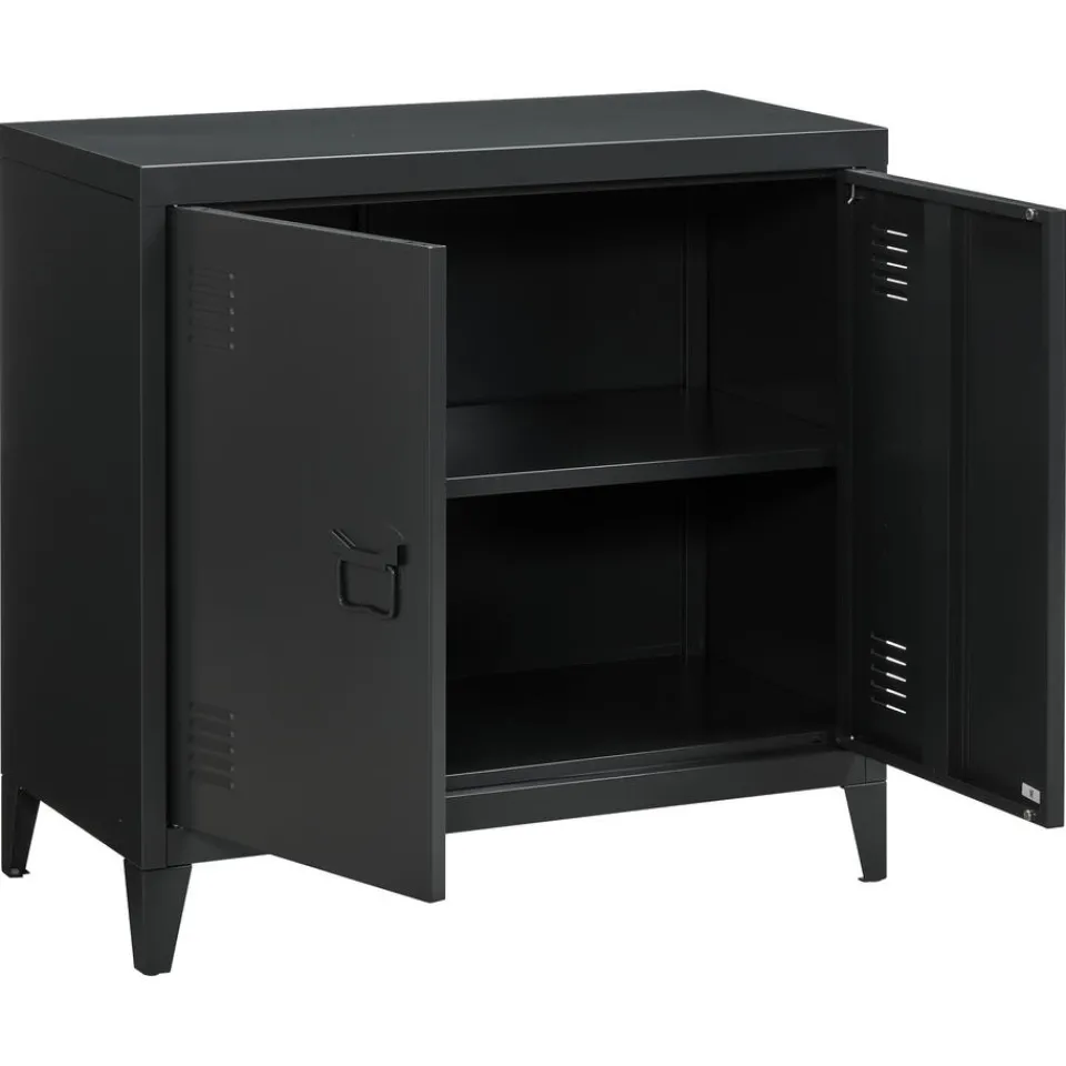 Stoere lockerkast van zwart metaal. 80x40x76 cm (lxbxh).