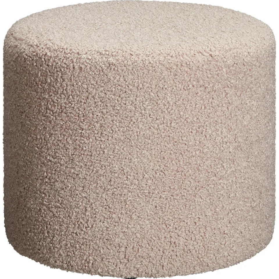 Moderne poef Padule in een taupe kleur. Deze poef is gemaakt van een bouclé stof. ø50×41 centimeter.
