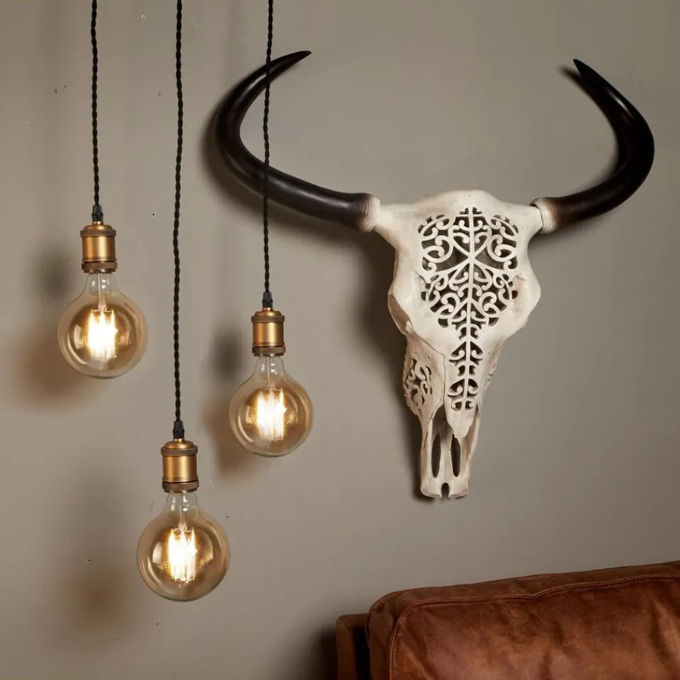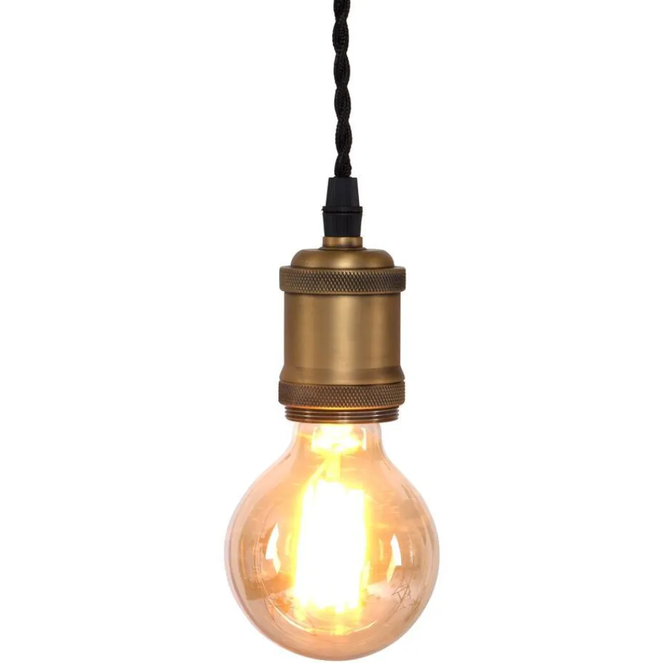 Sfeervol snoerpendel Mizar met grote fitting. Exclusief lichtbron. Doorsnede: 9.7 cm. Hoogte: 150 cm. Kleur: brons.