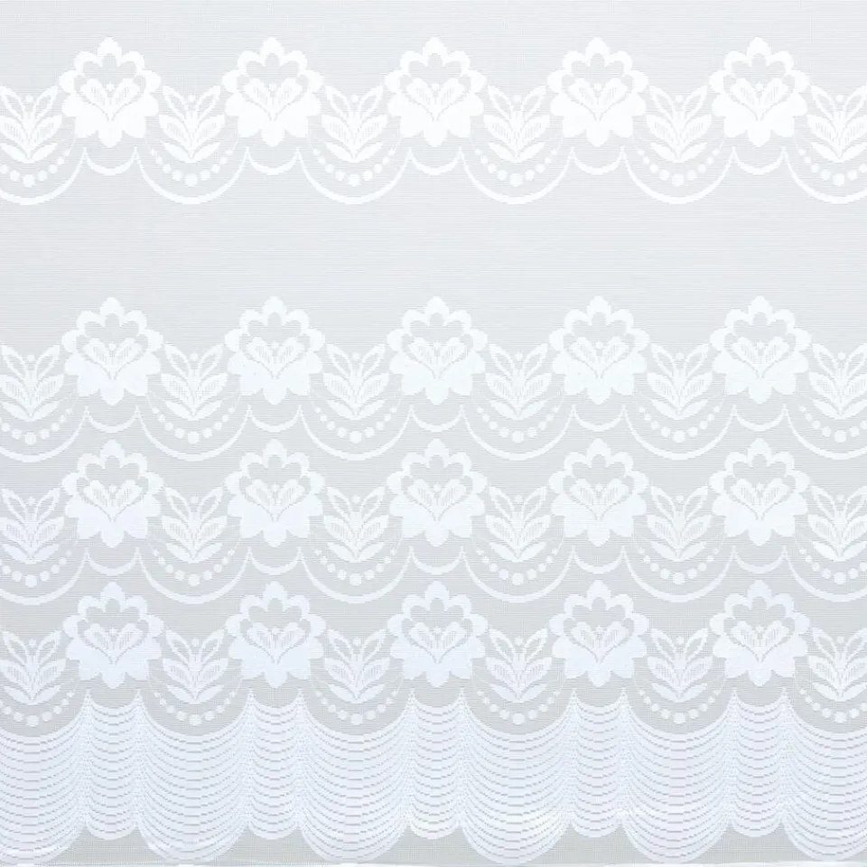 Vitrage met bloemig patroon. Soepel en vormvast. 180 cm hoog.