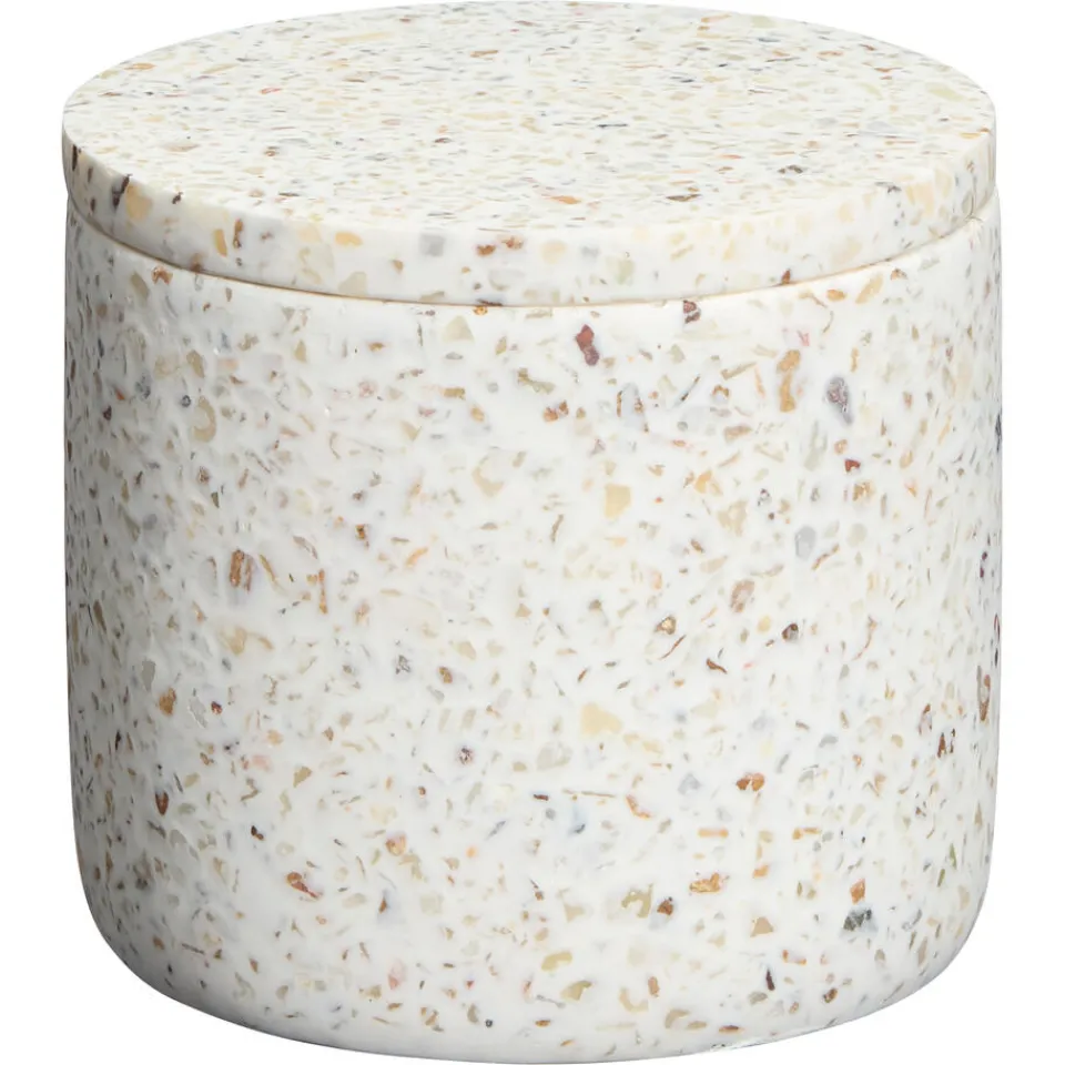 Het sfeervolle Terazzo wattenpotje heeft een prachtige off-white kleur.Dit stijlvolle potje, gemaakt van 100% hars (polyresin), is zowel praktisch als decoratief.Ideaal voor het opbergen van watten en andere kleine benodigdheden.Voeg elegantie toe aan jouw badkamer met dit wattenpotje engeniet van de perfecte combinatie van functionaliteit en esthetiek.